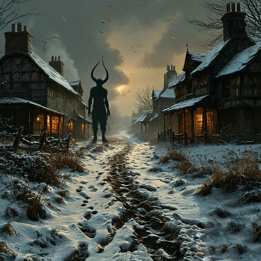 Снег лёг на землю белым саваном. Мороз сковал улицы, хрустя под сапогами запоздалых путников. Ветер свистел в узких переулках, пугая редких прохожих шорохами за спиной. Ночь была тёмной, густой, как чернила, и только редкие масляные фонари отбрасывали дрожащие блики на стены домов. Но утром Девон проснулся в страхе. По узким улочкам, через дворы и дома, по крышам и заборам, через реки и леса тянулась цепочка странных следов. Они были похожи на отпечатки раздвоенных копыт, идеальные по форме, аккуратно расположенные в линию, как будто некая невидимая тварь шествовала по Девонширу с определённой целью. Миссис Элизабет Холмс, вдова врача, первой увидела их на крыльце. — Господи помилуй… — она судорожно перекрестилась, отступая к двери. Слухи распространились мгновенно. Через пару часов у церкви Святого Михаила в деревне Топшем собралась толпа. Фермеры, лавочники, рыбаки — все искали объяснения. — Может, это кабаны? — предположил констебль Томас Гриффитс, нахмурив густые брови. —
