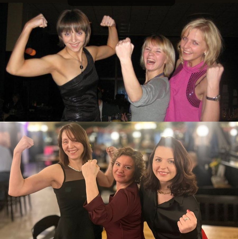 Это мы с девчонками решили повторить фото пятнадцатилетней давности.