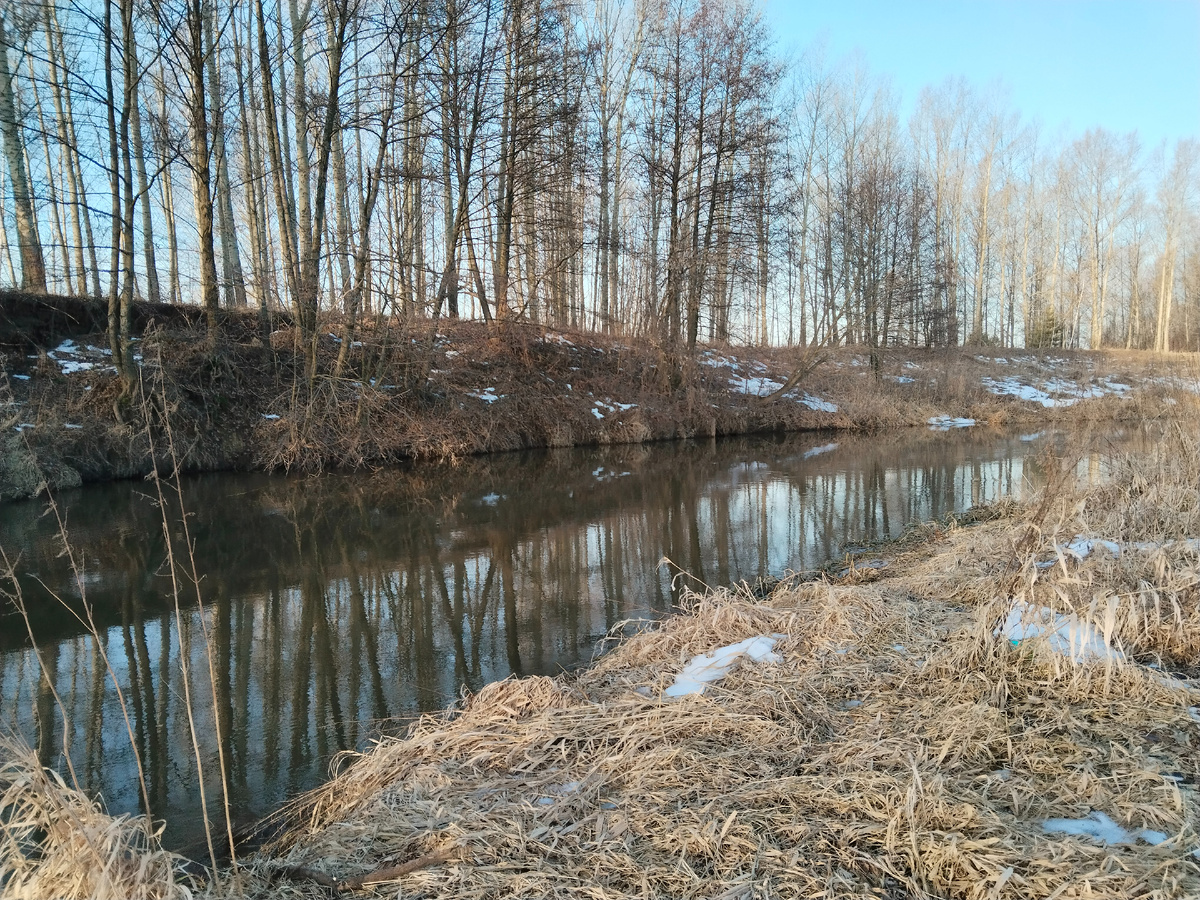 09.03.25. Зимний спиннинг. Закрытие сезона. Снега уже практически нет, тепло, бегут ручьи. Поехал пораньше, пока немного земля подморожена и грязные ручьи не бегут в реку Вода немного за неделю прибыла и чуть мутновата с утра была. Очень сильный ветер, хоть и теплый, но с неудобного направления. Первую щучку удалось соблазнить уже на второй точке. После перебора приманок, сработал 3,5" виброхвост. Черный, с жёлтым хвостиком. Лёгкий тычок, подсечка, и как будто бревно подсек. Потом бревно шевельнулось и срез. Ещё пара точек по нулям. Ямка на повороте. Стою высоко, ветер огромную дугу выдувает, хоть и держу спиннинг ближе к воде. Опять перебор приманок с расчетом на голавля-ни поклёвки. Ставлю виброхвост с жёлтым хвостом и на первой проводке тычок. Ещё через пару проводок тычок, подсечка, сход. Клюет на выбросе, на выходе из ямы. Не просекаю видимо с огромной дугой плетни. Следующий заброс и мощная потяжка недалеко от меня. Щучка хорошо за кило и против течения, но справился спокойно.