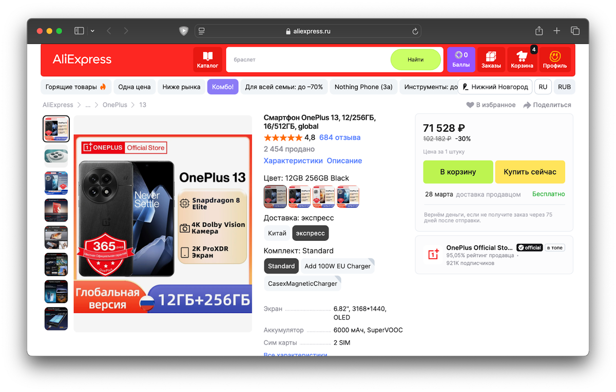 История покупки и продажи OnePlus 13, к сожалению, не так линейна и проста, как могла быть. Как только смартфон появился на AliExpress, я сразу же его заказал. Продавец выставил шикарную цену на глобальную версию и предлагал «экспресс-доставку» с местного склада, так что долго думать не пришлось.