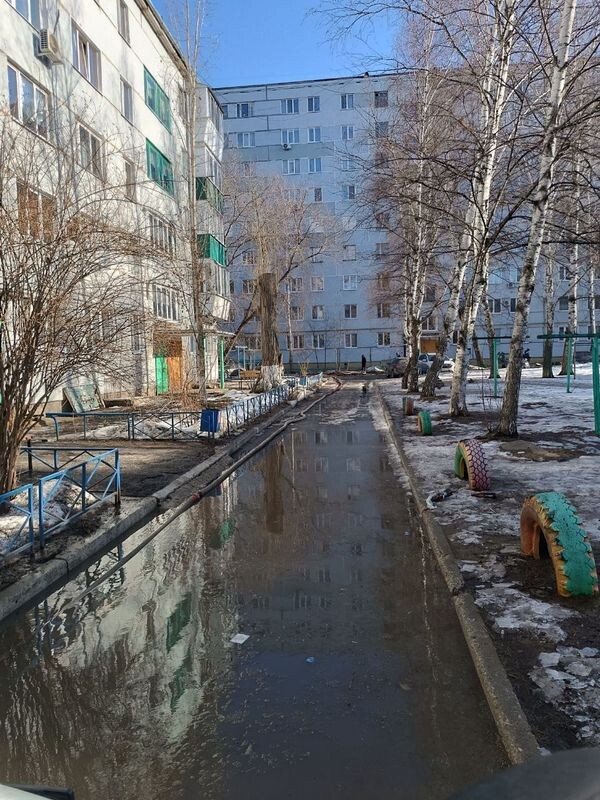 Спасатели работали сегодня во дворе дома № 32 по проспекту 50 лет Октября в Сызрани. Помощь решительных людей и спецтехники потребовалась жильцам дома, который ежегодно «плавает» в озере талой воды. Дом №32 по проспекту 50 лет Октября - на особом контроле властей Сызрани; речь о контроле за подтопляемостью дома, в частности, шла на недавнем заседании противопаводковой комиссии Сызрани. Когда в советские годы застраивали Монгору, было допущено несколько крупных технологических просчетов. Один из них - отсутствие ливневой канализации у ряда домов. Где-то сетевые ливневки пытались заменить колодцами-отстойниками, которые с годами перестали обслуживать - как у дома №7 по проспекту Королева, два подъезда которого также «плавают» после каждого дождя; а где-то, как у дома №32, была проложена тупиковая ветка канализации. Как сообщал в 2022 году портал «маленькая Сызрань», обслуживавшая дом управляющая компания предприняла серьезные попытки прочистить ливневку. Рабочие бились с системой почти в