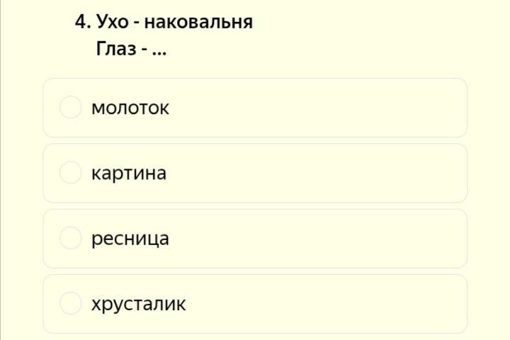 Несложные вопросы на логику, попробуйте ответить на все. Это отличная тренировка прямо сейчас. Проверьте себя, взбодрите мозг. В тестах на логику самое сложное - понять логику составителя. Иногда тот смысл, который он вкладывает в свой вопрос, понятен только ему одному. Каюсь, это иногда про меня. Давайте разберём два самых сложных и спорных вопроса из предыдущего моего теста на логику на канале. 1. Нужно выбрать вариант ответа после дефиса: Здесь нужно было просто вспомнить строение уха и глаза. Кто это сделал, то решил это задание без проблем. Но очень многие все же забыли, что внутри нашего уха столько всего! Там и молоточек, и наковальня, и стремечко, и барабанная перепонка, и улиточка. Поэтому по данной логике нужно искать часть внутреннего строения глаза. Ресница не подходит - это внешнее, картина не подходит тем более. Внутри глаза нет молотка, но зато есть хрусталик. Вспоминаем, что там есть ещё зрачок, роговица, радужка, стекловидное тело, сетчатка и т.д. 2. Чашка для чая