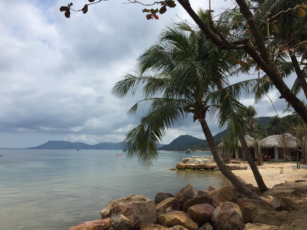 Возможно, так оно и было несколько лет назад, когда наплыв туристов был в разы меньше. Сейчас же некогда дикий и пустой пляж показался слишком уж переполненным отдыхающими и банально грязным, особенно в сравнении с посещенным камбоджийским взморьем Отрес. Объехав все пляжи, отмеченные на путеводной карте, проводили закат на своём, западном берегу, спасаясь от косяков комаров как бегемоты: из воды в окружении маленьких летучих мышей и чёрных туч москитов торчали только головы.