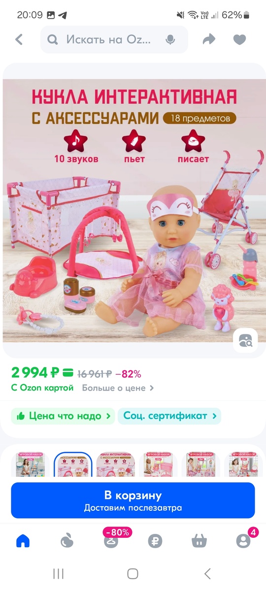 Куклы, кстати, у нее не в почете до сих пор, хотя у нас несколько разных, я помню думала на 3 года куплю ей крутой набор для куклы - с коляской, манежем и всяким таким, а оказалось, что ей интересно совсем другое.