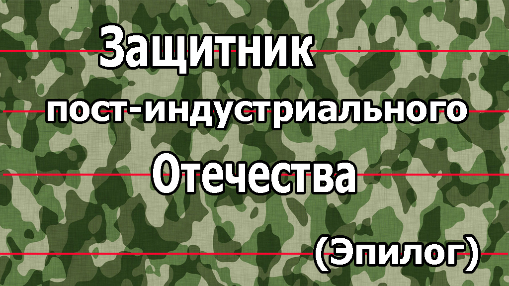 Чтобы не пришлось воевать по настоящему, а жить в покое и благополучие, нам всем надо делать то, о чём я пишу в сериале - защищать страну от пост-индустриальной агрессии.