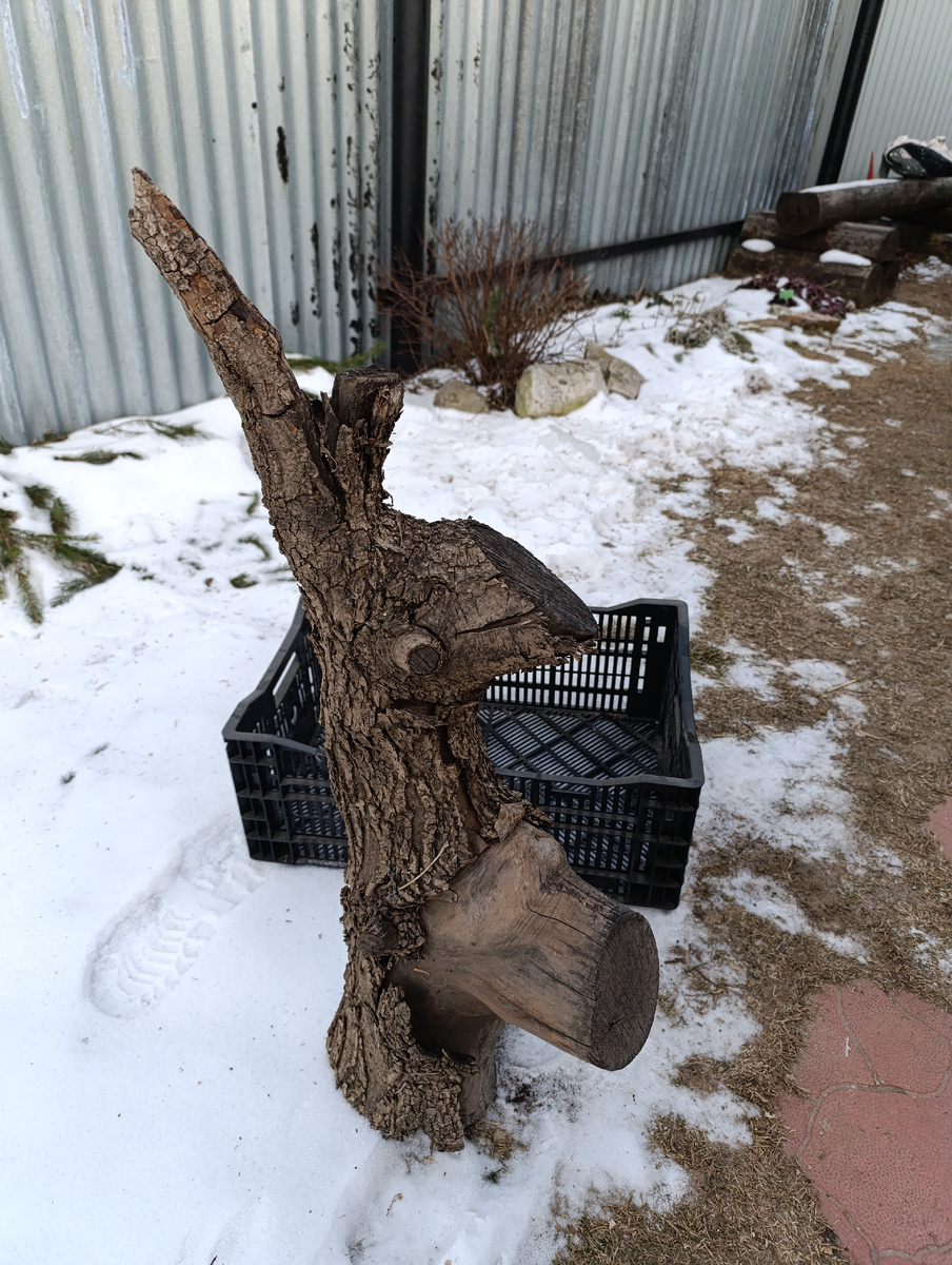 На улице очень тепло, солнечно, а в такую погоду совершенно неохота сидеть дома. На участке особо дел пока нет, а нас посетила одна идея. Принялись творить. Лежала у нас в запасах вот такая коряга. Лежала, ждала своего часа. Электропилой срезали лишнее, чтоб на каждом сучке получилась площадка. Из запасов был вытащен старый изолятор. Решили, что в коряге ему самое место. Грибу трутовику тоже место нашлось. А как же без света? Нужна лампа...Керосиновая ... И она нашлась! Помните мои домики? Они будут стоять здесь. Крепили с помощью гвоздя без шляпки, вбитого в корягу, а другим концом в домик. Получилась деревенька. Для пущего антуража добавили старую ржавую цепь. Для кота ученого... Примостили у ёлки на входе. Нас теперь встречает сказочная деревенька. Пора потихоньку выставлять декорации на участок, с ними повеселее. Спасибо за внимание, 👍, комментарии! Всем мира и добра!