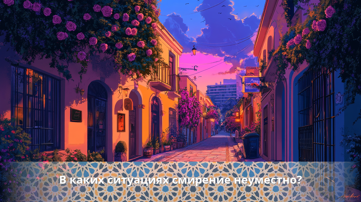 В заключение, смирение — это важная добродетель, но в некоторых ситуациях оно может быть неуместным или даже вредным. В случаях несправедливости, манипуляций или борьбы за справедливость смирение может привести к усилению угнетения, потерям прав и самоуважения. Также оно может стать причиной размытия личных границ, когда человек слишком часто уступает в угоду окружающим. В таких ситуациях важно проявить решительность, отстоять свои интересы и не бояться конфликтов, если они необходимы для защиты своих прав. Смирение не должно быть синонимом слабости или бездействия, а должно быть уместным в контексте мудрого и взвешенного отношения к жизни. Понимание, когда смирение помогает, а когда оно становится препятствием, — ключ к внутреннему балансу и способности жить в согласии с собой и окружающим миром.