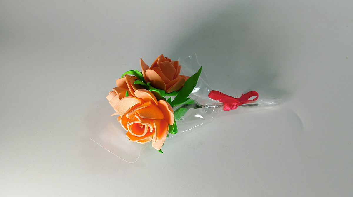 Вчера был праздник 8 марта. А куклам тоже захотелось получить в подарок букетик цветов. Подарим? Для изготовления цветов понадобиться флористическая проволока (можно и тонкую обычную), фоамиран двух или более цветов, миллиметровая бумага, горячий клей (клей-пистолет). Нарисуем шаблон на миллиметровой бумаге. Если шаблоны ещё будут в дальнейшем нужны, тогда их необходимо перенести на лист бумаги (через стекло, копировальную бумагу или с помощью светового графического планшета). Вырезаем шаблоны. Подготавливаем фоамиран и проволоку для работы Переводить шаблоны на фоамиран лучше с помощью острого предмета, например, зубочистки, шила или иглы. Для изготовления одного цветочка понадобиться 3 детали цветка, 1 деталь чашелистика и 1 деталь листочка. Вырезаем все детали. Подготовим проволоку. Для одного цветка понадобиться 20 см проволоки. Кончик проволоки несколько раз закрутим в овал. В цветке посередине сделаем отверстие и немного (около 7 мм) надрежем каждый лепесток у цветка в направл