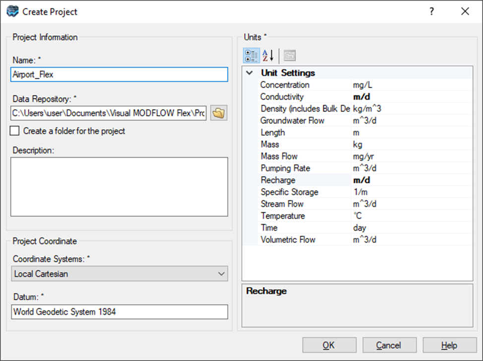 · Определите свою систему координат и базу данных (или просто оставьте локальные декартовы координаты по умолчанию).