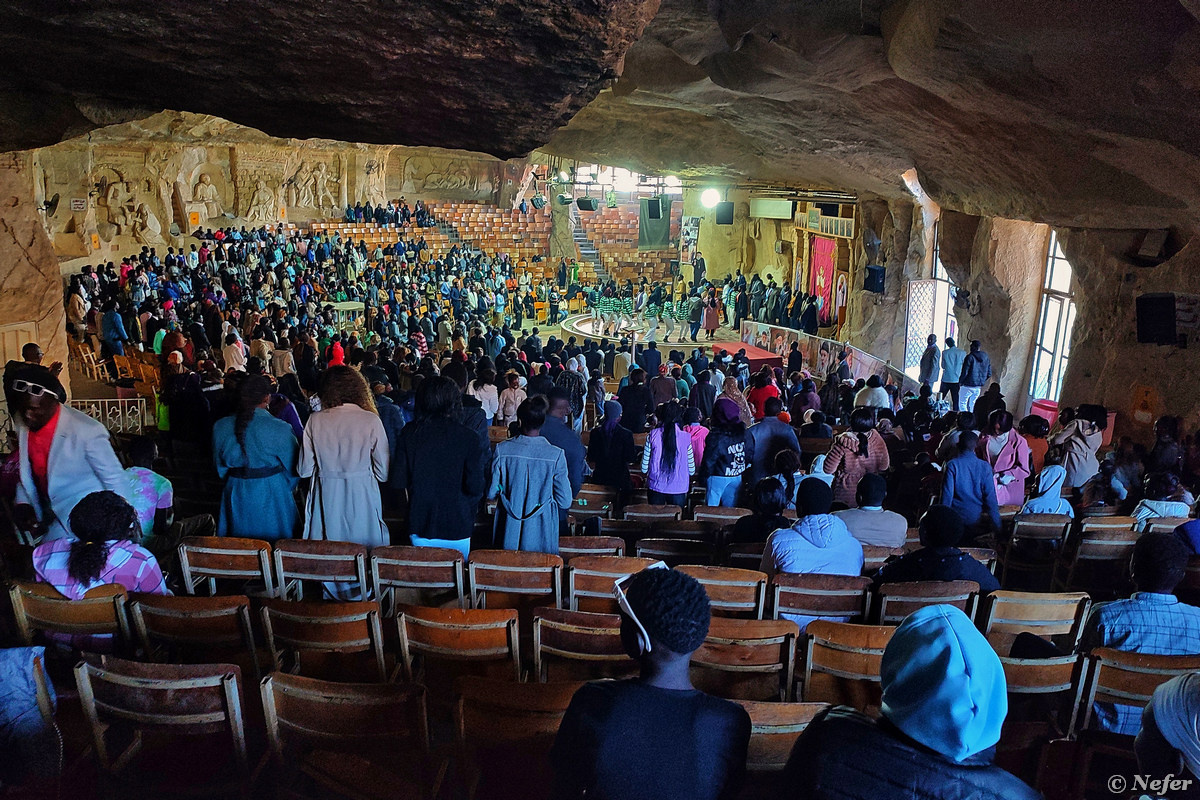 Если первая церковь по сути это грот, то вторая - полноценная пещера. Название прочитать непросто, вроде написано St.Saman El Kharaz. Из церкви доносилась громкая музыка, а вокруг тусили чернокожие. В смысле африканцы. Служба представляла собой веселые песнопения, прихлопывания, притопывания, алилуя и вот это вот все (см. заглавное фото). Оказалось, это не копты, а какая-то другая община, их просто пустили отметить Рождество. Не идти же им в мечеть.