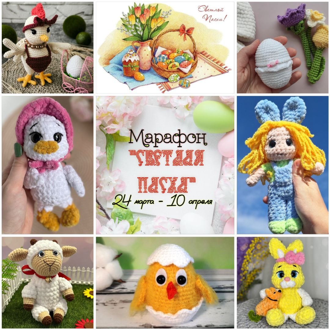 Приглашаем всех любителей вязания на весенний марафон! На нашем марафоне вы свяжете 7 пасхальных игрушек: 1. Цыплёнок 2. Барашек 3. Курочка 4. Уточка 5. Яйцо-сюрприз 6. Зайка 7. Девочка Сроки марафона: 24.03.25 - 10.04.25. Присоединиться можно на любом этапе до 5.04.25. По завершению марафона вас ждут подарки от спонсоров! Подробности здесь: https://vk.com/wall-222823357_4809
