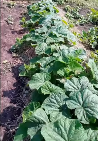 Но из своего детства помню (а мне уже 71 г ), как сажала моя бабуля. Теплицы не было. Сажала именно так, чтобы не растекалась вода при поливе. Но с обоих концов борозды были вбиты колья с натянутым шпагатом (или веревочкой). Через них перекидывали подросшие плети огурцов. Удобно было собирать урожай. Так что, ничего нового.