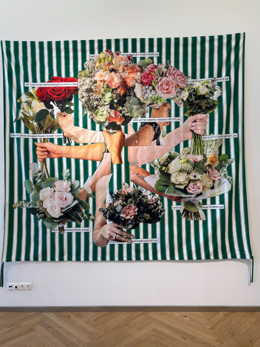 Пространство галереи было превращено в настоящий цветочный магазин, но не обычный, а художественный. Здесь были импровизированные киоски, холодильник с «букетами», которые на самом деле оказались арт-объектами. Цветы были представлены в самых разных формах: графике, живописи, скульптуре, цифровой печати и даже вышивке. Каждый экспонат был уникален и заставлял задуматься о том, как мы воспринимаем привычные вещи.