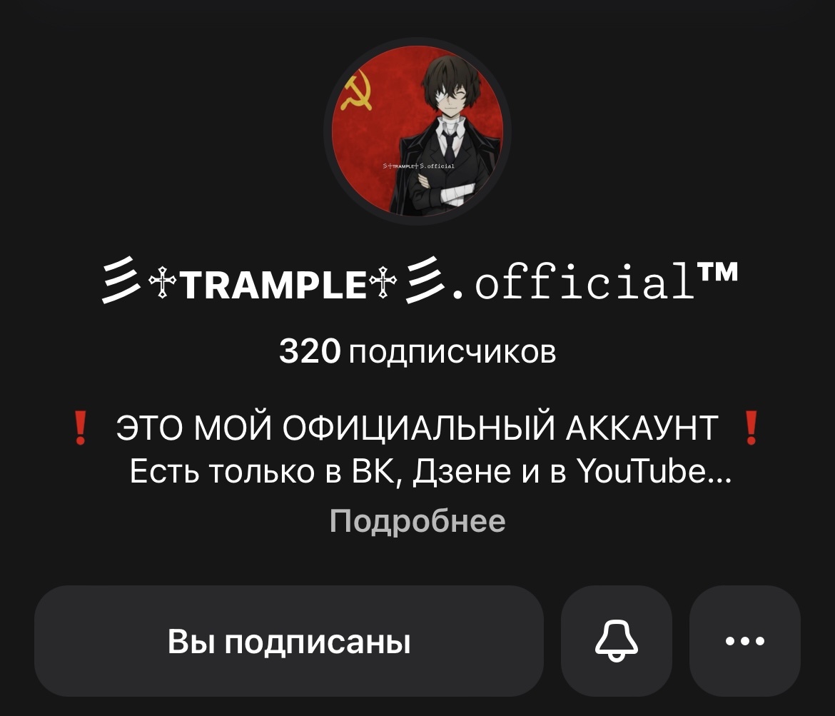 Первая подписка 彡♱ᴛʀᴀᴍᴘʟᴇ♱彡. 𝚘𝚏𝚏𝚒𝚌𝚒𝚊𝚕™