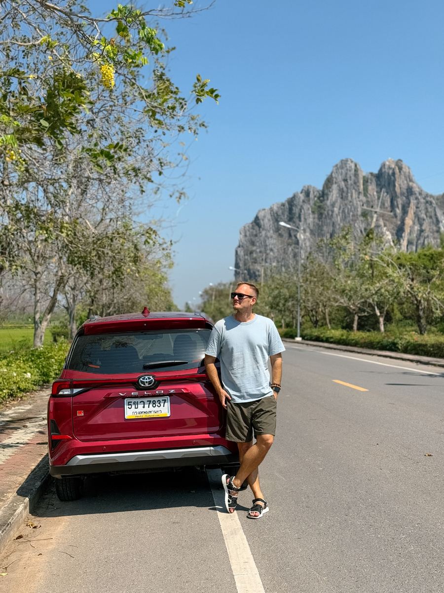 С правым рулём и левосторонним движением жизнь меня сталкивала несколько раз - обычно именно в путешествиях. Главная проблема лично для меня - это привыкнуть не к движению, а к тому, что дворники и поворотники меняются местами (так, кстати, не во всех странах, но в Таиланде точно). Итак, я снял бегемота. Бегемота зовут Toyota Veloz и это здоровенный 7-местный компакт-вэн для развивающихся рынков. Зачем такой большой? Потому что ехать нам пришлось вчетвером с четерьмя чемоданами. На каком-нибудь седане было бы тесно, а тут - в самый раз. По нюансам. Брали машину через Hertz заранее, ещё в декабре. Получилось довольно выгодно - за 6 дней я заплатил 21.277 рублей. За такую большую машину ценник весьма адекватный, как по мне. Для бронирования нужны международные права и кредитная карта зарубежного банка. Кредитной у меня нет, но дебетовка белорусского БНБ-банка бьётся как кредитка, так что с этим проблем не возникло. Сама тачка забавная. Большая, места много, но экономия чувствуется во вс