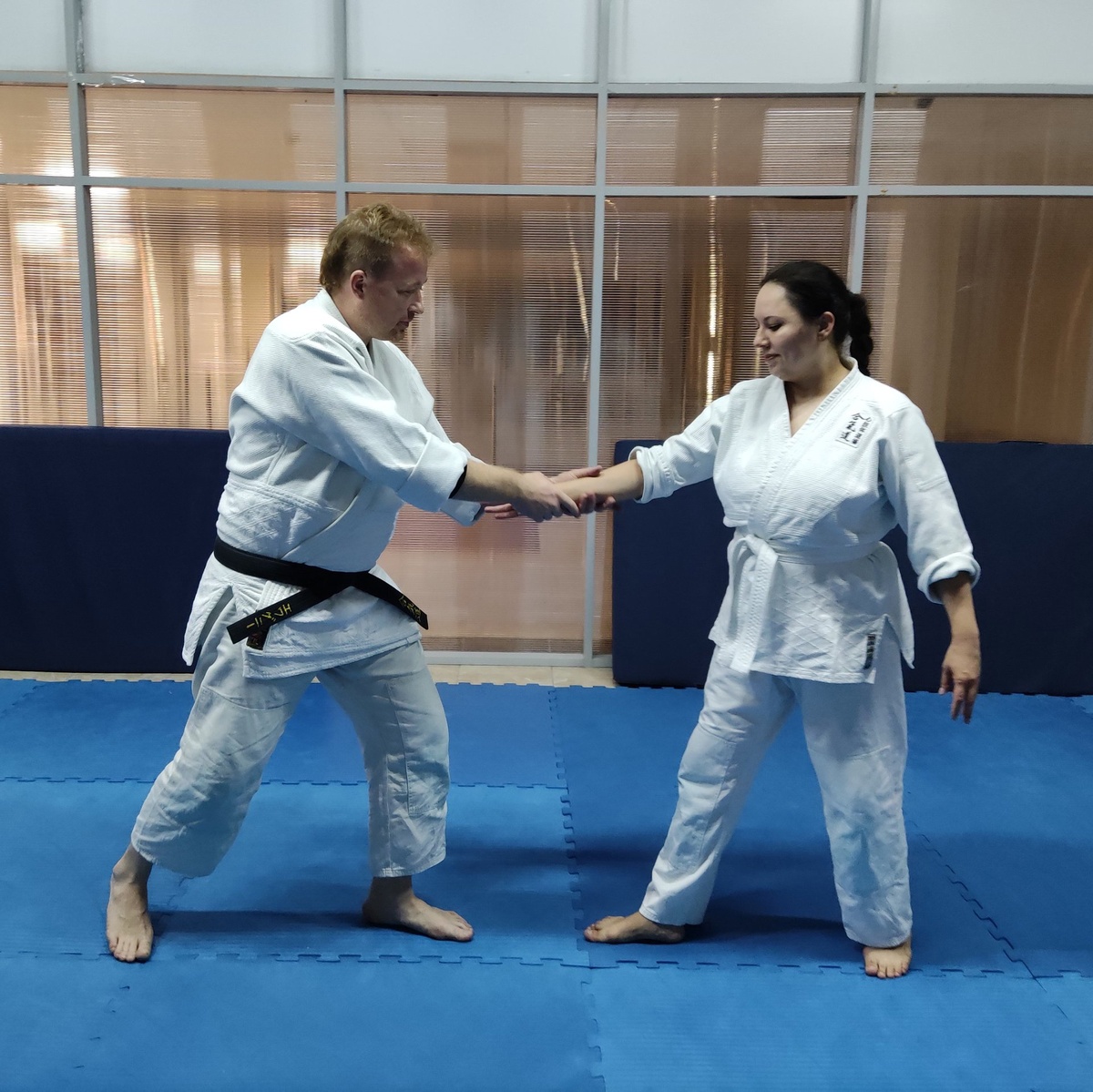 3. Партнёры с разницей в опыте. При большой разнице в уровне более опытному товарищу не составит особого труда заблокировать движения тори и не дать выполнить технику. Это довольно тонкий момент: укэ нужно постараться сделать так, чтобы менее опытный тори всё-таки смог сделать технику, но близко к пределу своих возможностей. Чего не следует делать: уходить в пространные объяснения, почему так, а не эдак. Даже если сам партнер об этом просит. Лучше посвятить время отработке техники. Вы можете подсказать, указать на ошибку (как телом, так и словом), но однозначно не стоит настаивать на своём варианте, требовать что-либо и упорствовать в своём сопротивлении. Сосредоточьтесь на корректном ассистировании, отработке страховок, ловите дзен, в конце концов. Если же это вы тори и у это вас не получается — попросите инструктора, пусть посмотрит со стороны, в чём причина. Возможно, ваш укэ ставит перед вами задачу, невыполнимую для вас на данном этапе обучения.