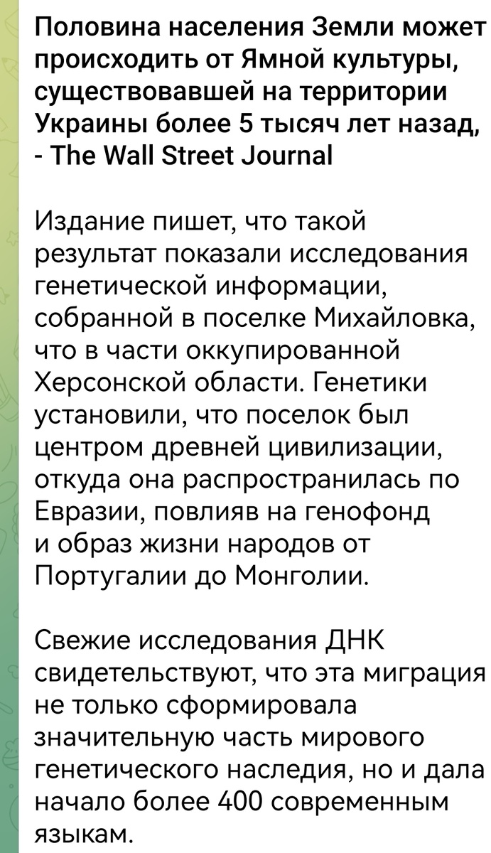 Самое весёлое, это как ДНК может дать начало разным языкам? Вот сын у меня армянского не знает, грузинского не знает, хотя эти ДНК в нем есть. Я сугубо русский человек, но украинский знаю в совершенстве. Или, например, Обама знает английский.... Есть у меня мутное подозрение, что ДНК ну никак с языками не связано...