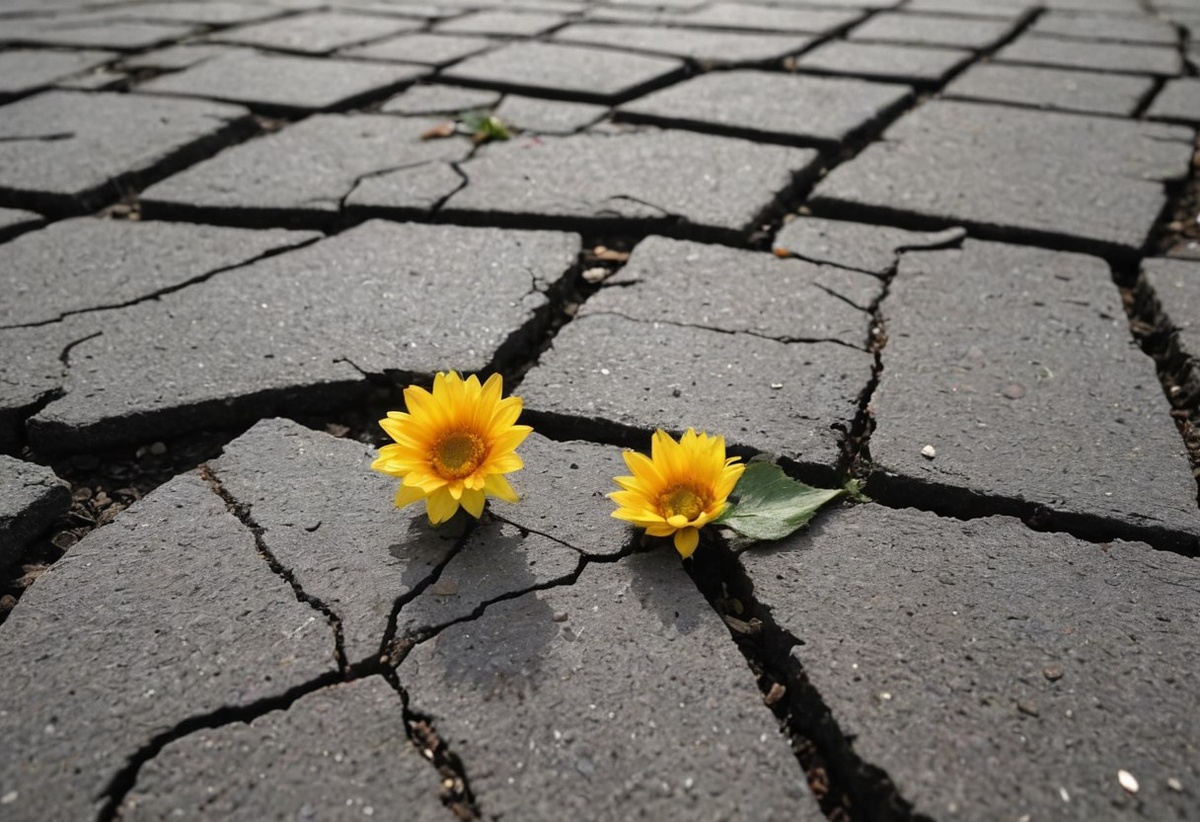 Среди плит бетонных, грубых, Где асфальт застыл угрюмо, Пророс цветок сквозь мрак и сумрак, Тонкий луч сквозь серость думал. Стебель тонкий, но упрямый, Тянет нить сквозь твердый гнет, Корни в камне, в снах туманых Прорубают жизни ход. Дождь несет потоки с дымом, Солнце жжет, суша росу, Но цветок сияет дивно, Озаряя серость ту. «Даже там, где мрак и стены, Где сердца в цепях хранят, Жизнь прольется сквозь измены, Тьму надеждой осенят». И прохожий, встав мгновенно, Видит свет среди оков, Красота, пускай мгновенна, Но сильней, чем грубость слов.