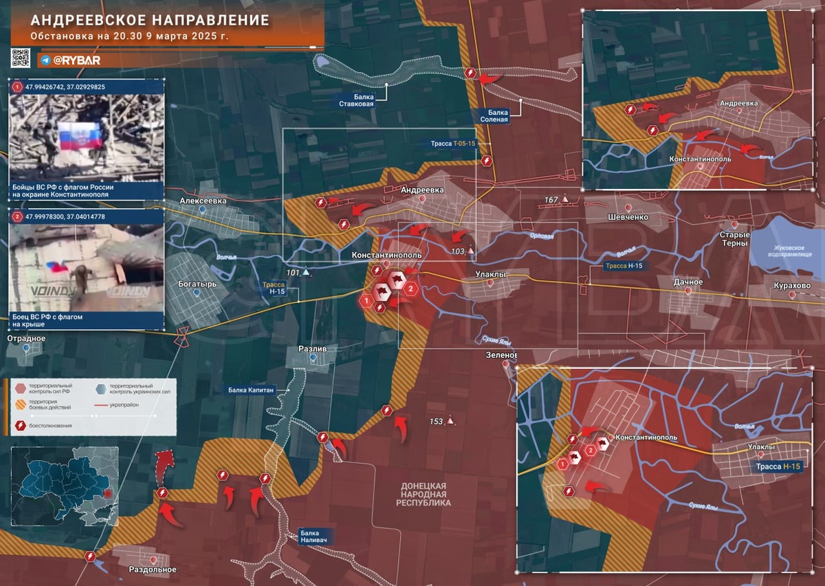 Объявлено об освобождении Константинополя. Это ДНР, Андреевское направление. Отличились части группировки войск «Восток» Константинополь — это село в Великоновоселковском районе бывшей Донецкой области. Причем село не маленькое. До войны в нем проживало порядка 1000 человек. Там находились те части ВСУ, которые были не добиты в Курахово. Наши продолжают наступать. Ждем новых хороших новостей. Да здравствует русская армия! Да здравствует русский солдат!