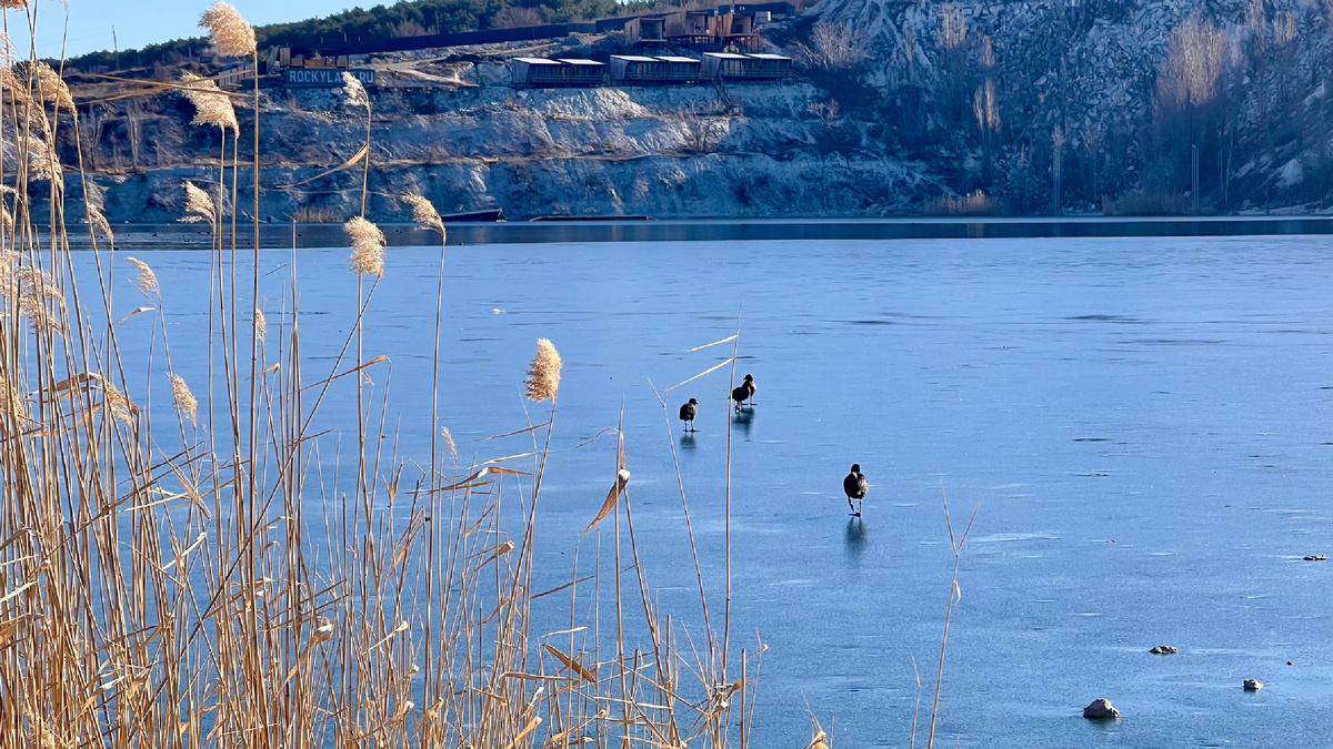 Сегодня покажу, как мы катались на sup бордах по заледеневшему озеру. Дело было как раз на этих выходных, 8 марта. Приехали мы на берег и застали вот такую странную картину: по озеру неспешно бродили птички в глубоких раздумьях. Ходят неспешно, словно проверяют качество льда. Половина озера скована ледяным панцырем, и это март, на минуточку! Цвет воды отличается от времени и от угла съемки. Не даром озеро называют «Марсианским!» Флегматичные птички меня просто удивили! Ходят спокойно по льду, будто так и надо! Возле камышей льда нет, мимо них мы и решили пройти. Тонкий лёд легко пробивается веслами. Идти можно, правда, очень медленно. Как вам такой пейзаж? Сегодня две из моих путешественниц — опытные сап-бордеры. Они легко встают и гребут стоя. Новички пока что не рискуют вставать, привыкают балансировать. Тем временем опытные отдыхают. Покатались мы пару часов и я собрал всех на общую фотографию. Не смотря на сложности организации такого мероприятия и страх оказаться в воде, всё пр