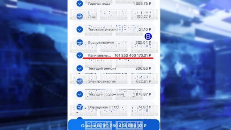 Жителю Новосибирска выставили счёт по квартплате более 161 миллиарда рублей. Об этом в редакцию «Вести Новосибирск» сообщил очень удивлённый суммой начисления читатель. Огромную сумму начислили жителю дома на улице Галущака. В электронной квитанции, которую получил собственник, можно увидеть счета за лифт, горячую воду, водоотведение, текущий ремонт, электричество, обращение с ТКО и текущее содержание. Начисленная сумма за все эти позиции не вызывает вопросов – всё в пределах разумного. Вот только счёт за капитальный ремонт лишил новосибирца дара речи. В указанной позиции значится сумма свыше 161 миллиарда рублей. Со слов обратившегося в редакцию «Вести Новосибирск» собеседника, другим собственникам дома пришли обычные счета, без сюрпризов. Новосибирец предположил, что, скорее всего, многомиллиардный счёт – результат ошибки бухгалтера местного ТСЖ при начислении суммы в графе «Капитальный ремонт дома». Платить выставленную сумму он, конечно, не будет и планирует разобраться в ситуации