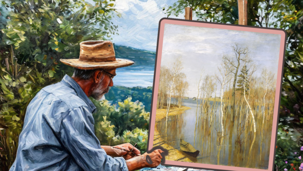 Сегодня мы поговорим о великом произведении Исаака Левитана «Весна. Большая вода» и напишем по ней сочинение. Давайте вместе окунемся в мир весенней природы и разберем все тонкости этого удивительного полотна. На переднем плане картины Исаака Левитана изображена величественная река, вышедшая из берегов, и прозрачная вода, отражающая деревья и небо. Старая лодка у берега символизирует былое время и ожидание новых приключений. На заднем плане видна затопленная деревня: некоторые дома гордо возвышаются над водой, другие полностью погружены в нее. Стройная ель контрастирует с золотистыми стволами осин и березами, создавая гармоничную композицию. Цветовая гамма картины состоит из холодных оттенков воды и теплых тонов деревьев и домов. Левитан мастерски передает философию природы: вода, несмотря на свою разрушительную силу, несет жизнь и обновление. Полотно отражает переход от зимнего сна к весеннему пробуждению, вызывая смешанные чувства: тревогу за затопленные дома и радость от предстоящег