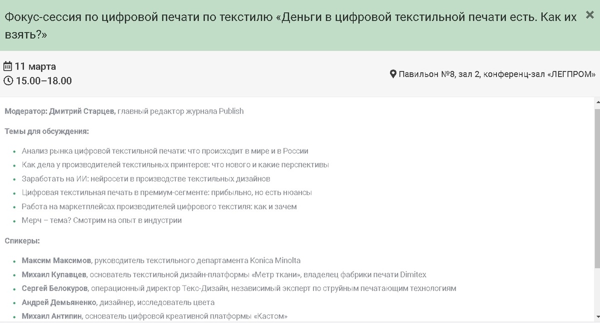 Завтра это мероприятие начнется в 15 часов дня. Приходите, будет интересно как на фокус-сессию, так и на выставку Инлегмаш-2025 (в Экспоцентр на Красной Пресне).