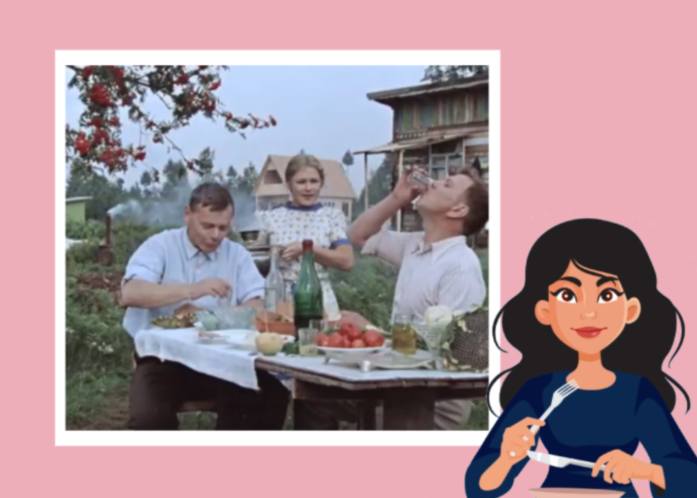Предлагаю включить фантазию. Вот представьте: случилось чудо и вам выпала возможность оказаться на часик внутри "Москва слезам не верит" - в моменте, где герои вкусно обедают (ну или ужинают).