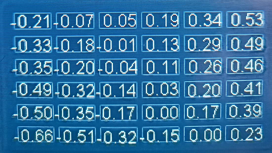 Поворачиваем левый передний и правый задний (в моём случае там максимальное отклонение) например на 1/2 оборота, запускаем autoleveling, смотрим результаты и высчитываем соотношение высота/обороты. И продолжаем уже осознанно крутить колёсики))