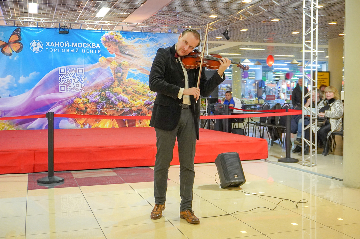 8 марта в «Ханой-Москва» разносились дивные звуки скрипки. Владимира Семибратова многие называют Орфеем современности. Неповторимый скрипач, чьи трепетные руки рождают бурлящий океан неистовых симфоний, покорил гостей торгового центра. Внушительный репертуар мировых хитов заставил трепетать сердца посетителей, которые не стесняясь, подходили к Владимиру выразить благодарность его таланту. После триумфального выступления на сцене «Ханой-Москва», музыкант переместился на -1 этаж в атриум, где встречал гостей торгового центра волнующими звуками скрипки. Параллельно по галереям ходил принц, раздавая в честь праздника милым дамам сладкие подарки. В это время на сцене сменяли друг друга детские коллективы, которые спешили поздравить любимых мам с Международным женским днем. Юные артисты коллективов «Городок», «Звездочки надежды», «Грани» и «Фабрика kids» выступали на высоком уровне, вызывая умилительные улыбки у гостей торгового центра. Проникнуться атмосферой праздника можно, загляну в альб