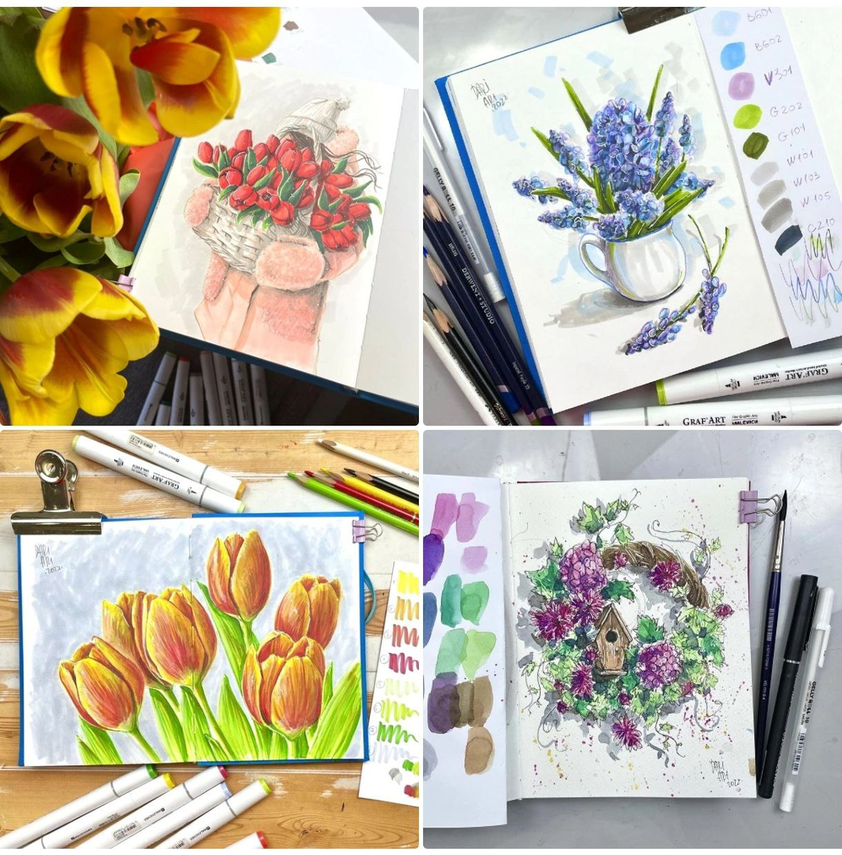 Рисуем весенние букеты, чтобы стало теплее 🧡
