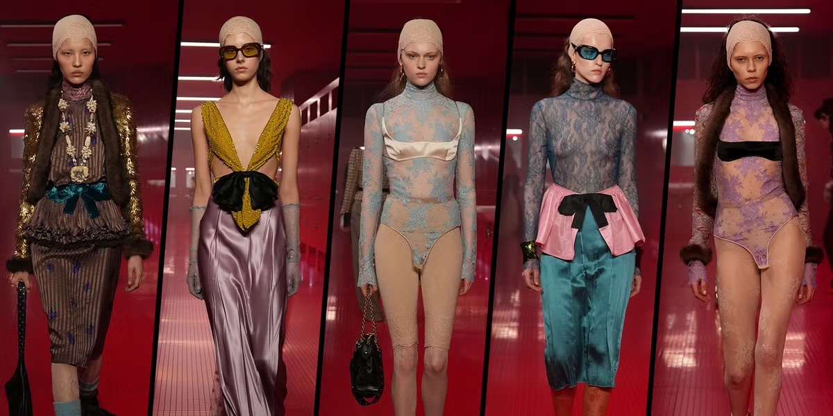 Новая женственность: искусство драмы и интимности Когда речь заходит о Valentino, мы представляем себе безупречную элегантность, воздушные ткани и эстетику вечной классики. Однако Алессандро Микеле продолжает разрушать границы традиционного восприятия модного дома. На этот раз дизайнер выбрал нестандартное пространство, полностью переворачивающее привычное представление о роскоши, а сама коллекция стала размышлением о двойственности моды — интимной и публичной, утончённой и дерзкой одновременно. Эта коллекция буквально будоражит, сочетая театральность с интимностью, вызывающую роскошь с хрупкой женственностью. Здесь нет привычной сдержанности Valentino — вместо неё драматичные силуэты, сложные многослойные конструкции и провокационные детали. Детали, которые создают настроение Коллекция наполнена отсылками к будуарному стилю: чувственность здесь подчёркнута не мягкими линиями, а контрастами фактур и объемов. • Кружевные боди поверх шелковое бельё: выглядели эффектно и почти театральн