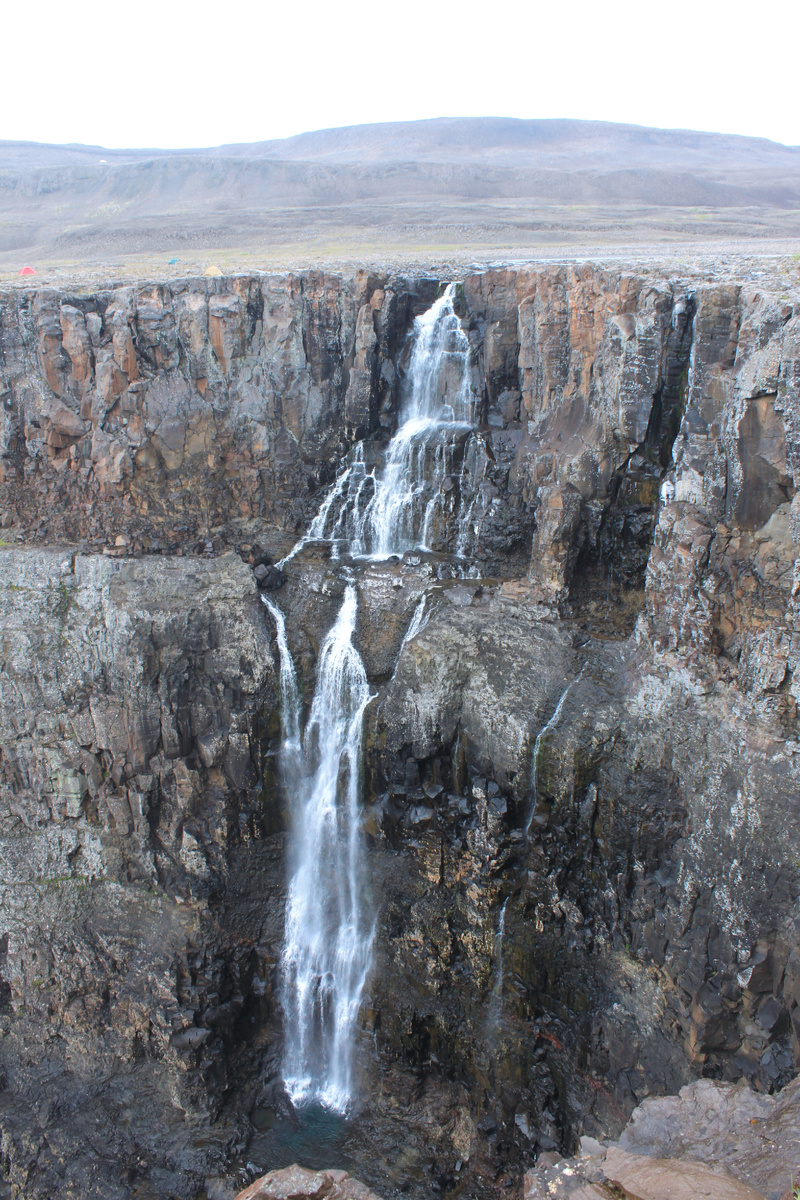 Утро началось с того, что я попытался разделить на части рога северного оленя, найденные мной накануне недалеко от водопадов. После завтрака по полке начали уходить вверх и уже скоро вышли на каменное плато где бурлил, зажатый базальтовым руслом, Хойси переливаясь бешенным потоком из одного озера в другое и далее вниз - туда откуда мы только что поднялись. На одном из привалов обнаружил пропажу своей ложки, благо ребята вчера нашли по дороге пару ложек с итальянской гравировкой.