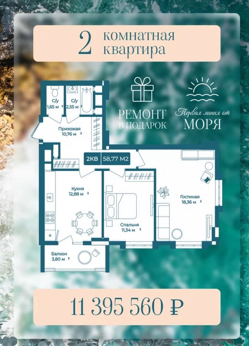 🏖️ Своя квартира у моря! 🌊 Откройте двери к уюту и комфорту в современном жилом комплексе, расположенном на живописном побережье Новороссийска. Наслаждайтесь чистым морским воздухом, прогулками вдоль пляжей и потрясающими видами прямо из окна вашей резиденции на берегу Черного моря. ✨ Преимущества жилого комплекса бизнес-класса: • Квартиры с качественным ремонтом • Первая линия от моря • Благоустроенная территория без автомобилей • Удобная инфраструктура, созданная для вашего максимального комфорта 🏡 Доступные варианты: • 1-комнатная квартира (54 кв.м) — от 9,9 млн руб. • 2-комнатная квартира (58 кв.м) — от 11,3 млн руб. • 3-комнатная квартира (83 кв.м) — от 15,2 млн руб. Не упустите возможность стать владельцем квартиры мечты! 🌅 📞 По всем вопросам обращайтесь: Написать в WhatsApp👇 https://wa.me/message/IAOIF4UNYTOJF1 Ваш новый дом ждет вас! 💙