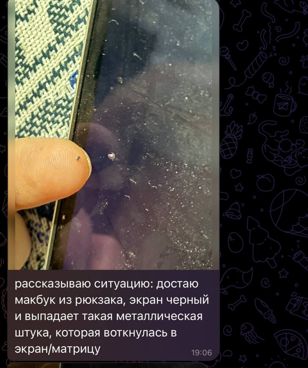 Недавно нам написал клиент после того как случайно закрыл макбук с куском металлической стружки прямо между экраном и клавиатурой, тем самым расколов очень дорогую матрицу. Ну а я пойду дальше починять примусы. Всем удачных ремонтов! г. Санкт-Петербург Все цены на ремонт есть на сайте. Плюс есть бесплатная доставка по всей России от 5000р заказа. А так же скидки на первый ремонт — 3%, на второй — 5%. Дальше, чем больше ремонтов, тем больше скидка! До 20% А сам ремонт можно спокойно оплатить в рассрочку через Яндекс Сплит без процентов на 4-6 месяцев) Я ВКонтакте Я в Телеграме Я в Ютубе Канал в телеграм с новостями Интересные посты (Осторожно! Много букв): Как восстановить олеофобное покрытие на своем телефоне? Насколько прочное стекло используют в мобильных телефонах? На чем держится влагозащита IP67? На примере Iphone 8 Аккумуляторы в телефонах и с чем их едят Как устроены Amoled и OLED матрицы Как устроены TFT и IPS матрицы Как гниют самсунги Как гниют китайцы