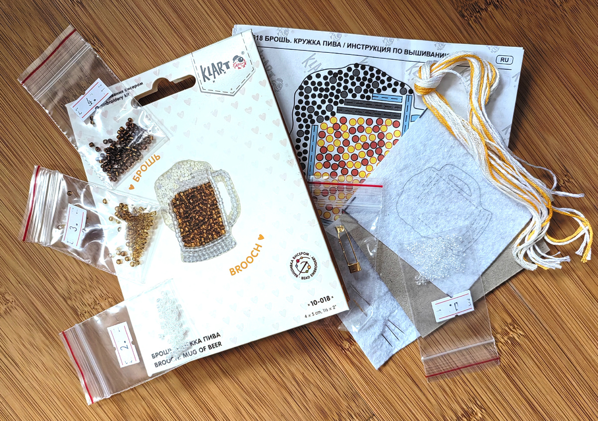 Приветствую, друзья! На моем дзен-канале небольшое затишье, а все потому, что вышиваю большие (в моём понимании) процессы и финишами не похвастаться 😄 Однако при всей симпатии к этим вышивкам (Дракон от Совиного леса и Русалка от Мира вышивки) душа просила чего-нибудь маленького, чтобы отвлечься! И я доставила наборчик, подаренный мужем на новый год. Это моя первая брошь, поэтому было особенно интересно и волнительно на каждом этапе 🙌 На фетр нанесены контуры вышивки, плюс набор сопровождается цветной схемой. Бисер в наборе 4х цветов, и каждый из них - некалиброванный. Для такой вышивки, полагаю, это не критично, и даже наоборот добавляет фактуры. Пена вышивается французскими узелками - самый долгий этап. Самый переживательный момент - это сборка 🤭 согласно инструкции вырезала деталь из картона и фетра для изнанки. Понадобился еще клей (в наборе его не было). Крепление для броши пришила горизонтально, а не вертикально, как рекомендуют в инструкции. А также заменила цвет используе