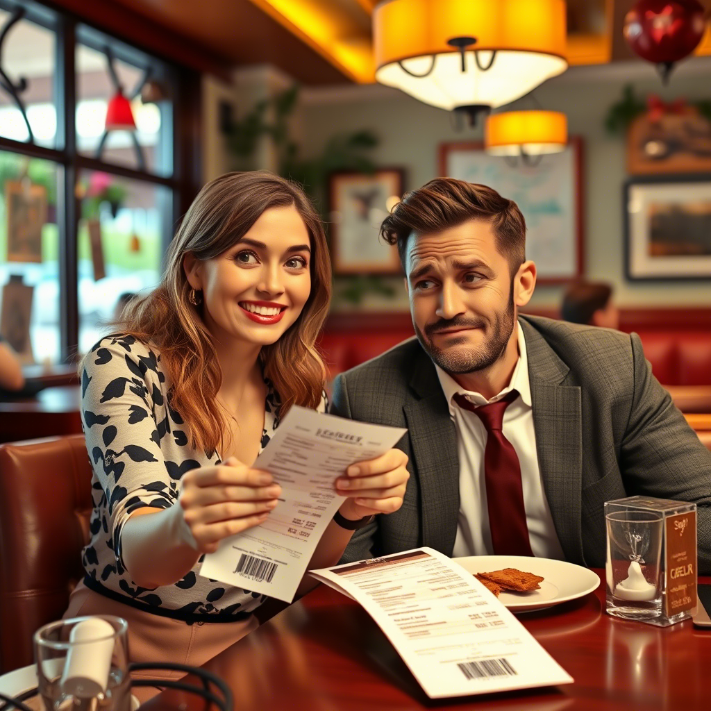 — Ты съел 780 грамм еды против моих 320, — она показала расчёты в приложении. — Плюс ты трижды брал мои салфетки. Это 18 рублей компенсации.