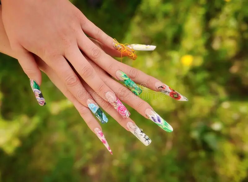 Акриловые ногти держатся две-три недели и должны подкрашиваться между визитами к врачу.