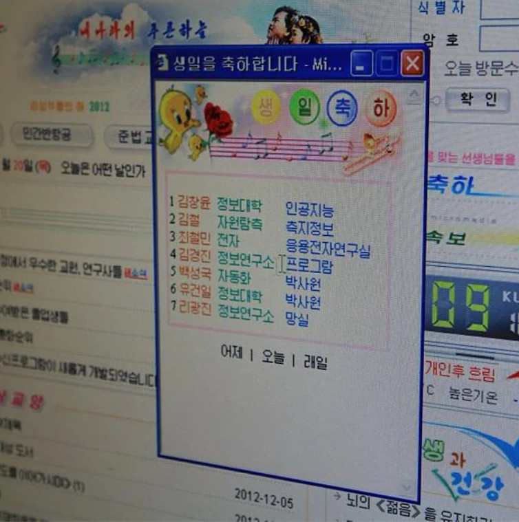 В 2013-м году в Интернет попала фотография северокорейской социальной сети, название которой неизвестно. Эта социальная сеть использовалась для создания заметок о памятных датах, а также для переписки между пользователями.