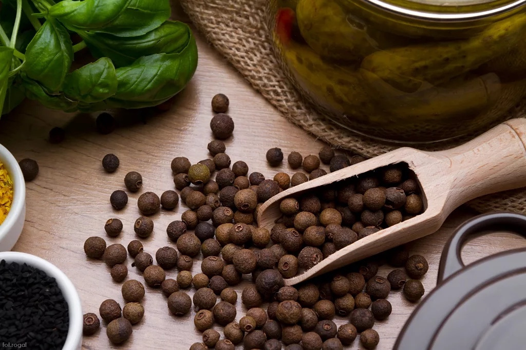 Душистый перец, относящийся к миртовым, представляет собой плод вечнозеленого дерева пименты лекарственной (Pimenta dioica). Примечательно, что в это же семейство входят ценные растения, такие как эвкалипт, лавровый лист (пимента кистевидная), гвоздика и гуава. Недозрелые плоды душистого перца собирают и высушивают на солнце, чтобы получить специю. Несмотря на внешнее сходство с черным перцем, при ближайшем рассмотрении различия становятся очевидными. Горошины душистого перца крупнее, с более гладкой кожурой и заметным следом от цветка. Черный же перец происходит от тропической лианы Piper nigrum и родом из индийского штата Керала. Родиной душистого перца считается Ямайка, хотя он культивируется в Мексике, на Кубе, в Индии и на Ближнем Востоке. Эта специя имеет названия на множестве языков, что свидетельствует о ее популярности. Аромат душистого перца объединяет в себе оттенки корицы, мускатного ореха, гвоздики и черного перца. За свой уникальный аромат и вкус на английском языке он на