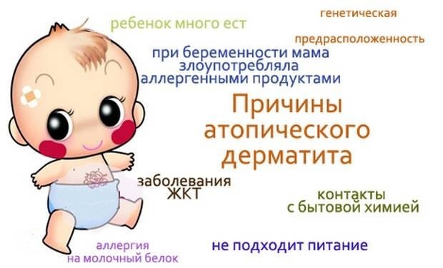 Атопический дерматит является хроническим воспалительным заболеванием кожи, которое характеризуется зудом, хроническим течением и возрастными особенностями высыпаний на коже. В возникновении заболевания играют роль следующие факторы: * Наследственность. * Гиперчувствительность к аллергенам. * Нарушение и дисфункция нервной системы с повышением продукции элементов воспаления в организме. Заболевание часто носит характер рецидивирующего (повторяющегося) про-цесса, иногда у пациентов имеются другие заболевания аллергической природы, такие как бронхиальная астма, аллергический ринит. Атопический дерматит начинается с младенческого возраста и может продолжаться до зрелого, тридцатилетнего, возраста. В течении заболевания выделяют три периода болезни, которые отличаются друг от друга характером высыпаний и расположением их на коже. 1. Младенческий период начинается с рождения ребёнка и продолжается до возраста двух лет. В младенческом периоде высыпания яркие, сопровождаются зудом и мокнутие