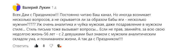 Друзья, сердечное спасибо всем за поздравления и комплименты в адрес моей скромной «творческой деятельности»! Поверьте: доброе слово и Бабе Яге приятно. Но больше всего меня поразило вот это предположение:
