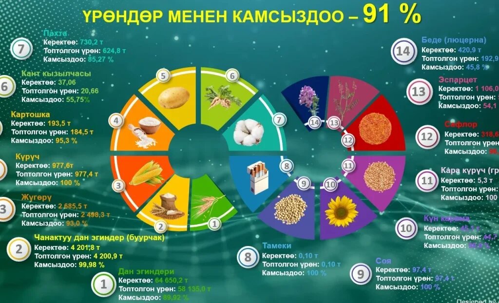 Министр Бакыт Торобаев сообщил, что проблем с поставками семян, удобрений и пестицидов в Кыргызстане не будет. Обеспеченность семенами зерновых культур составляет 91%, а удобрениями — 30%. Поставки пестицидов также идут без перебоев. 🌱 Кыргызстанда айыл чарба үчүн керектүү үрөн, жер семирткич жана пестициддер жетиштүү көлөмдө камсыздалат. 🌾 Быйылкы жылы дан өсүмдүктөрүнүн үрөнүнө болгон муктаждык 64,6 миң тоннаны түзөт, анын 58,5 миң тоннасы топтолгон, бул 91% камсыздалууну билдирет. 🌿 Жер семирткичтердин жылдык керектөөсү болжол менен 140-150 миң тонна, ал эми учурда 41,9 миң тоннасы жеткирилген, бул 30% камсыздалууну түзөт. 💰 Аммиак селитрасынын баасы 23,0 – 30,0 сом, мочевинанын баасы 29,5 – 39,0 сом болуп, пестициддердин орточо баасы 600дөн 3 000 сомго чейин. 🚜 Пестициддердин жалпы керектөөсү 713,3 тонна болуп, учурда 241,8 тонна жеткирилген, бул 34% камсыздалууну билдирет. Пестициддердин жеткирүүсүндө эч кандай көйгөйлөр жок.