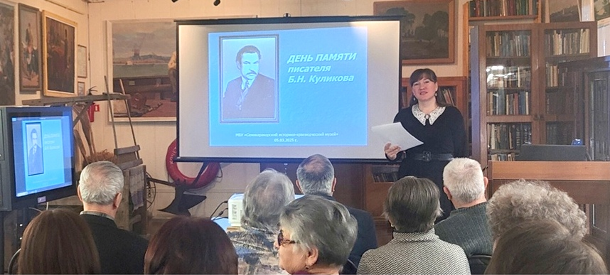 В Семикаракорском историко-краеведческом музее 5 марта, в день памяти писателя-земляка Бориса Куликова, провели литературную встречу. В Куликовском зале собрались представители Клуба любителей истории Отечества. Провела встречу директор музея Л.С. Здоровцева. В год 80-летия Великой Победы главной темой встречи стала поэзия, рожденная в годы Великой Отечественной войны. Собравшиеся послушали стихи советских поэтов-фронтовиков — Юлии Друниной, Семена Гудзенко, Константина Симонова, Давида Самойлова, Александра Твардовского, Булата Окуджавы, Бориса Кострова, Григория Поженяна, Николая Майорова, Юрия Левитанского, Павла Когана, Михаила Кульчицкого. Поэзия Бориса Николаевича Куликова, чье детство пришлось на военные годы, была представлена стихотворениями «Россия» и «Обелиски». Посетители музея посмотрели видеоролик, где наш земляк Пётр Кунаховец исполняет песню на стихи Бориса Куликова «Обелиски».