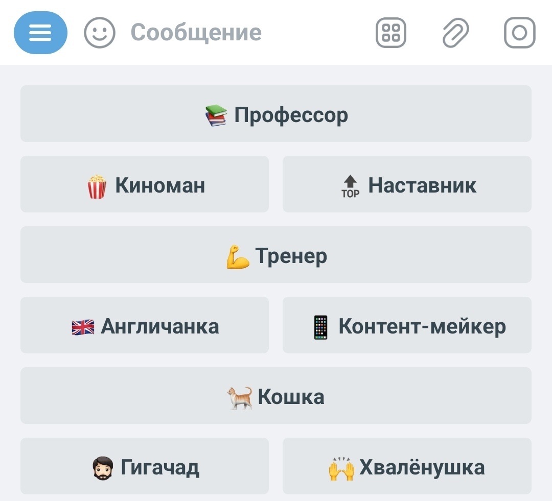 В боте GigaChat в Телеграм есть дополнительные персонажи: Наставник, Киноман, Профессор, Тренер, Кошка и т.д. Каждый из них поможет в определенной теме и создаст настроение.