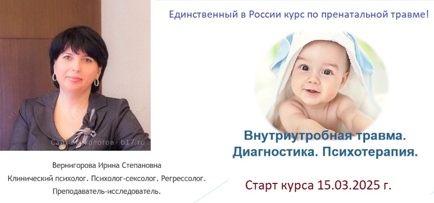 15 марта начнется курс на котором я буду выступать: "Внутриутробная травма. Диагностика. Психотерапия." Курс разработан Ириной Вернигоровой (Клинический психолог. Сексолог. Регрессионный терапевт. Преподаватель-Исследователь) Помимо перинатальных травм, на курсе будет много клинической информации, диагностики и самое главное - практики! Когда то я сама его прошла и после прошла еще нескольких курсов у Ирины и использую эти знания в своей практике. От незнания многие люди и даже врачи, психологи до сих пор думают, что жизнь человека начинается с момента рождения. И все стадии: оральные, анальные, и так далее, что завещал нам дедушка Фрейд, тоже от 0-10 лет. Как же я была рада, когда узнала, что это не так. "А куда деть тот опыт, когда плод развивался в теле мамы? Мы же там были живым телом, а не игрушкой!"