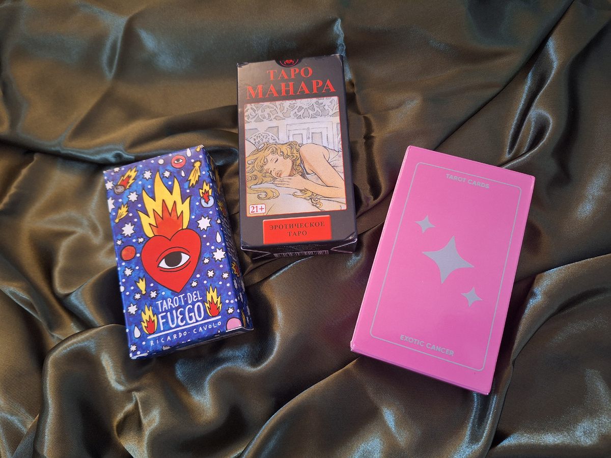 Любовные расклады — самые востребованные. Женщины покупают себе собственные колоды, чтобы задавать картам самые заветные, интимные вопросы, не делясь ими с тарологами. Какую колоду лучше взять, чтобы спросить у нее самые заветные вопросики про самое сокровенное и иногда непристойное. Колода в розово-неоновых цветах с эротической клубной атмосферой и сильно раздетыми персонажами. Колода откровенная, но ее все еще формально нельзя называть порнографической. Если использовать колоду в соцсетях, то придется некоторые части карт замазывать или закрывать стикерами в сториз. В колоде демонстрируются некоторые BDSM-практики, и мужчины чаще в позиции нижних. Это определяет ЦА колоды Экзотического Рака. Однако вся атмосфера колоды все равно сильно ассоциируется с опасной средой для женщин. Поэтому эта колода только для самых смелых. Если честно, она скорее вайбит знаком Скорпиона. Но спорить с авторами не буду. Манара стала синонимом эротической колоды таро. Настолько велико ее влияние на кол
