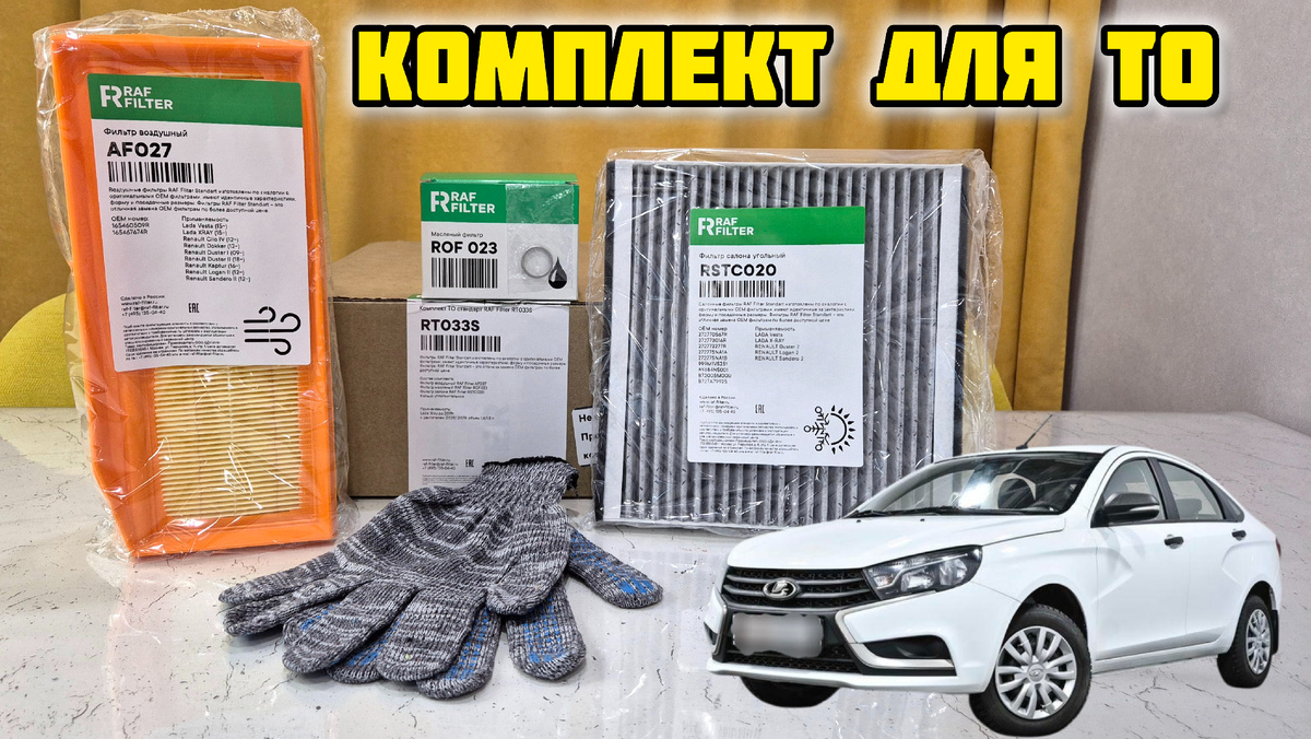 Здравствуй дорогой читатель! В данной записи мы расскажем про очередной комплект для ТО от компании RAFFILTER RT033S Комплект подойдёт для Лада Веста до 2019 года, как оказалось что у Лада Веста до и после 2019 года разные корпусы воздушных фильтров 👌 И так в скором времени планируется замена моторного масла на Лада Веста 2017 года, там его и будем применять. Теперь подробнее про комплект. Упаковано все в картонную коробку Состоит из 🔹️Воздушный фильтр AF027 🔹️Салонный фильтр RSTC020 🔹️ Масляный фильтр ROF 023 Кстати у фильтра следующее применение 🔹️Уплотнительное кольцо сливной пробки 🔹️Пара перчаток Полный комплект Комплекта достаточно для сезонного технического обслуживания авто, скоро проверим в деле 🛠 В комментариях пишите удобно ли Вам приобретать расходники для ТО комплектами!? ✍️