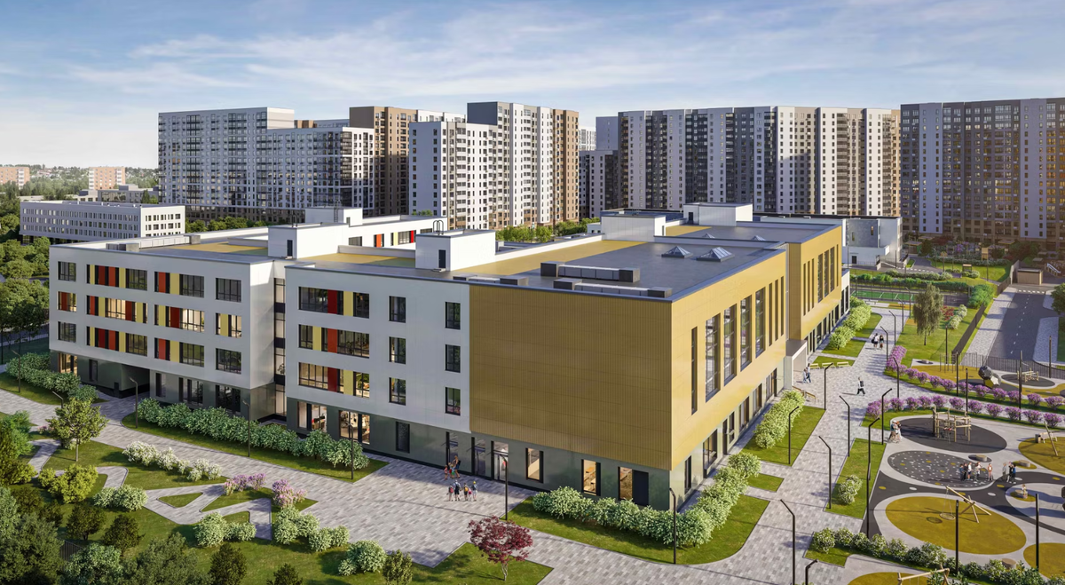 Центральную часть территории школы займёт сквер с зеленой зоной, а для школьников будут оборудованы спортивные площадки: футбольное поле, зоны для воркаута, места для баскетбола и игры для младшеклассников. Строительство школы завершится в 2026 году.