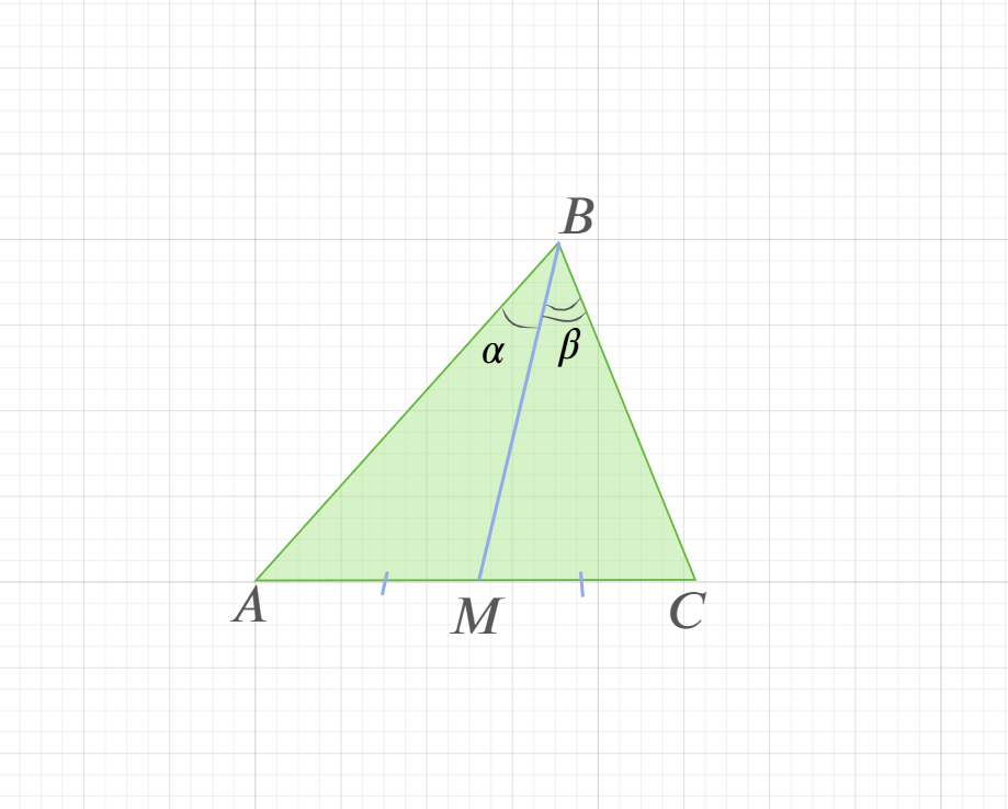 17. ★★☆ В треугольнике ABC провели медиану BM. Известно, что AB>BC. Сравните углы ABM и CBM